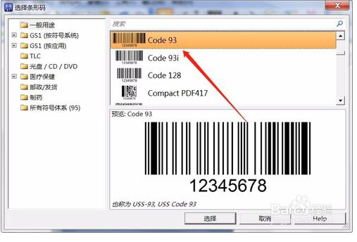 然後呢,樱桃视频黄色网址先搞定條碼,首先點擊條碼,注意條碼的編碼方式,一般都是code93、code39、code93i,還有常用的EAN-8、EAN-13,這裏選擇code93。